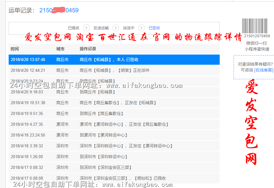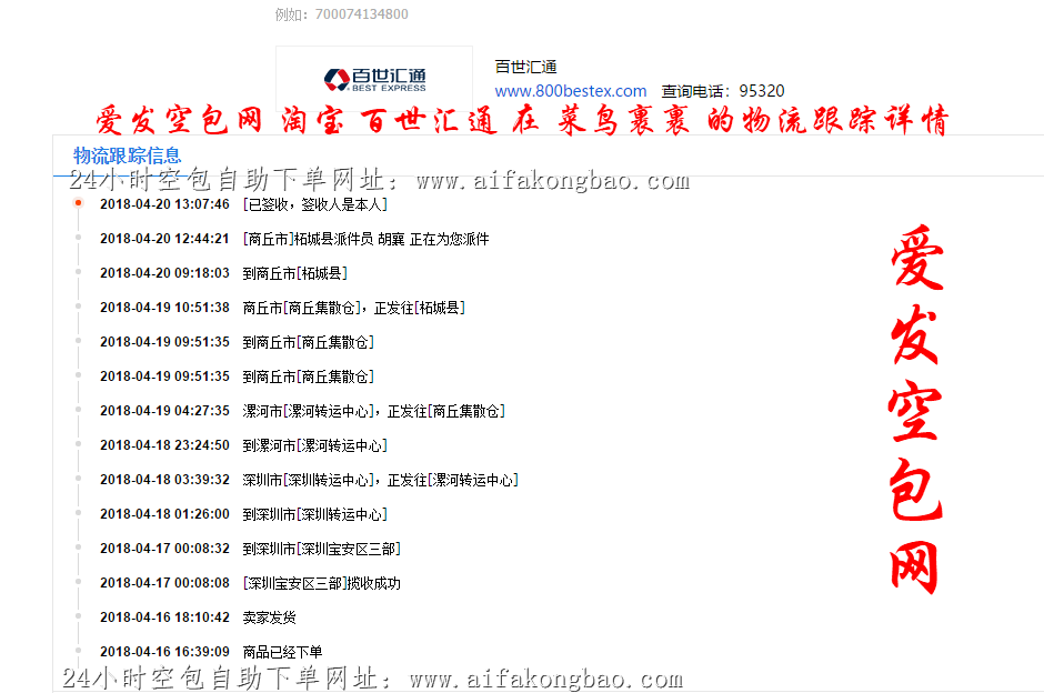 以下是各大快递公司(申通快递,百世快递,国通快递,全峰快递, 增益速递,龙邦速递,亚风-全国-配送, 快服务快递)在淘宝 菜鸟裹裹以及官网的物流跟踪详情 截图: