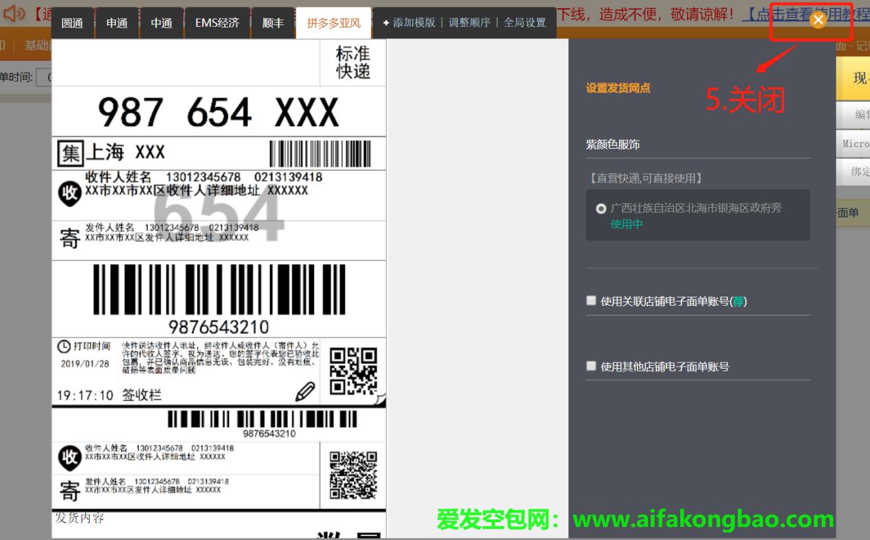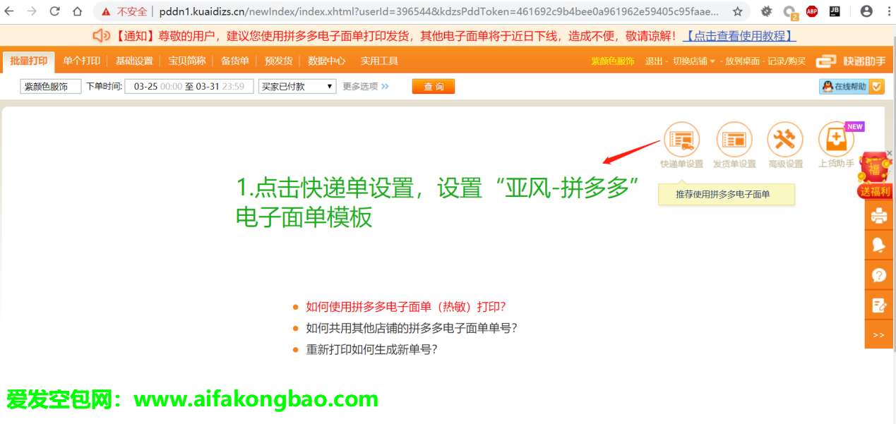 拼多多电子面单使用教程:本站已 亚风速递 为例做出 拼多多使用电子面单发货的使用教程: